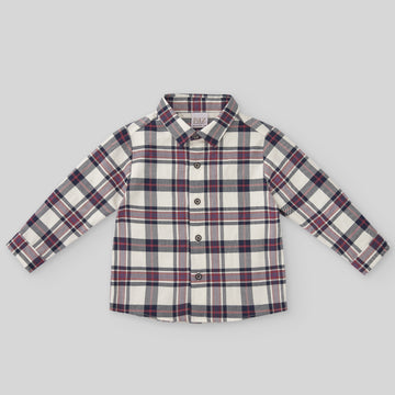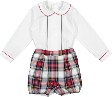 This stylish set combines a classic plaid shirt with navy blue shorts for a smart...